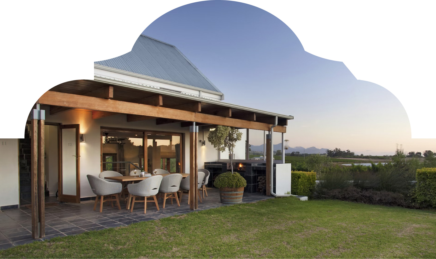 The function room in the 1927 Barn has many happy stories to tell, from special occasions to celebrations to business thank yous. You can make whatever you want of it. You could have a celebration there, but equally it could be used for a conference, or a company lunch. What we’ve got is a venue with a great fireplace that opens onto a large terraced lawn with views of the Helderberg, and ample space for a marquee.